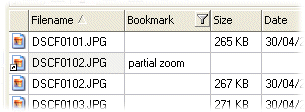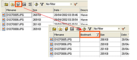 1. Enable the Bookmark view using the Bookmark Icon on the File Filter Toolbar. This will display the Bookmark Column in the File List Pane