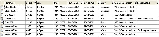 Utilizing Notes fields and Bookmarks FNO3 can be customized to convert such a filing system into a electronic version. Received bills would be scanned into the PC and then filed with Notes and Bookmarks being used to replicate the structure of the paper based filing system. With the availability of FNO3's filter and sort tools a very efficient Filing system can be created and managed.