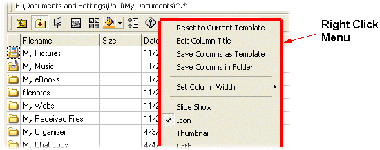 | Set Column Width | n/a | Enables the width of each column in the File List Pane to be specified in pixels or set to Autofit Width |