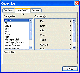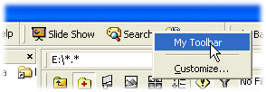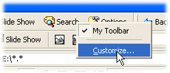 3. The toolbar right click Customize menu option enables customization of the My Toolbar buttons