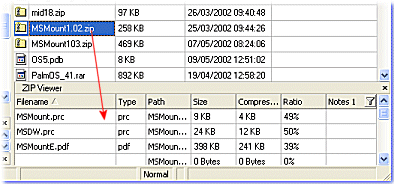 2. Open the Zip Viewer Pane to display the contents of the zip file