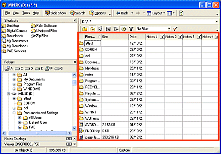 From the file list you can view and edit Notes, Bookmarks and other FNO3 fields associated with folders and files