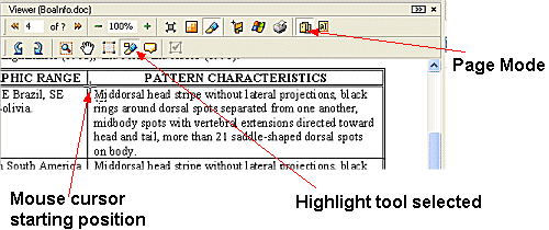 A variety of tools are available when viewing a document in Page Mode. The tools include annotation tools and standard image editing and document viewing tools.