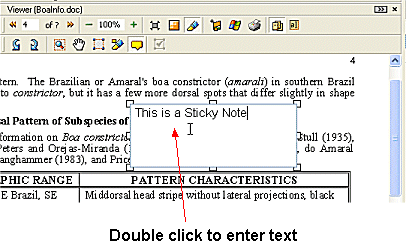 6. Release the mouse to the create the Sticky Note. Double click inside the Sticky Note to enter text