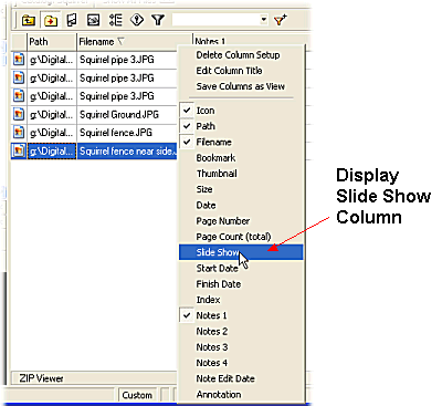 2. Right Click on the column header to display the Column Menu and select Slide Show
