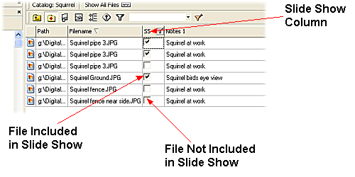 3. In the Slide Show Column check the boxes of the files to be included in the Slide Show