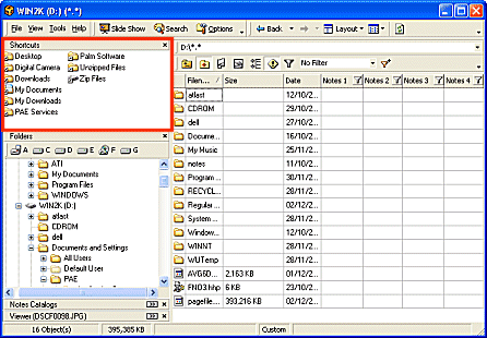 Selecting any folder in the Shortcuts Pane will display the contents of that folder in the File List Pane