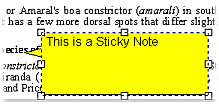 The default Sticky Note is a yellow text box overlaid on the document being viewed in the Viewer Pane.