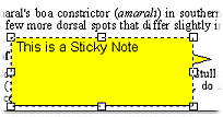 The appearance of the Sticky Note can be modified by using the right click menu when the mouse cursor is over the Sticky Note while the Note is in Selection Mode (as shown below).