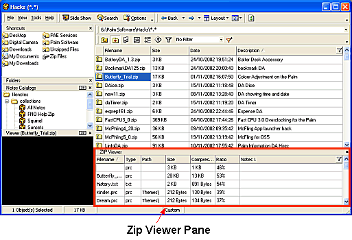 2. Open the Zip Viewer Pane to display the contents of the zip file