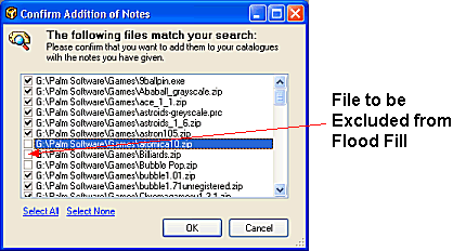 7. FNO3 will confirm the files matching the filter criteria. Uncheck any files in the results list to exclude those files from the Flood Fill